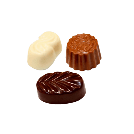 Deliciosos bocaditos de coberturas de chocolate sin azucares añadidos, en los tres sabores y colores.