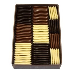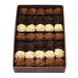 Ingredientes: Pasta de cacao, azúcar, manteca de cacao, emulgente: lecitina de SOJA y aroma de vainilla....