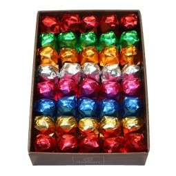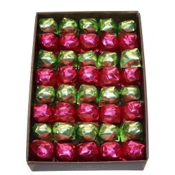 Ingredientes: pasta de cacao, azúcar, manteca de cacao, uvas (25%), licor (9%), emulgente: lecitina de SOJA, jarabe...