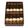 Trocitos de almendras tostadas con coberturas de chocolate con leche, blanco y negro.