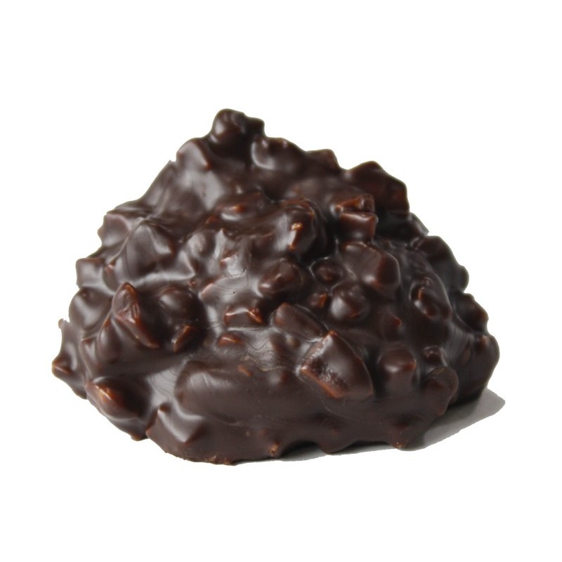 Trocitos de almendras tostadas con cobertura de chocolate negro.