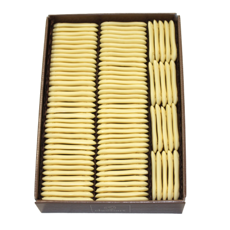 Deliciosas lenguas de gato en cobertura de chocolate blanco.