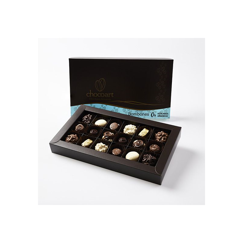 ESTUCHE BOMBONES ARTESANOS SURTIDOS SIN AZÚCARES AÑADIDOS 240 g CONTIENE 18 UDS. 2 ROCAS DE ALMENDRA NEGRAS, 2 ROCAS DE ALMENDRA LECHE, 2 ROCAS DE ALMENDRA BLANCAS, 2 BOCADITOS BLANCOS 2 BOCADITOS NEGROS, 2 BOCADITOS LECHE, 2 TRES AVELLANAS, 2 AVELLANAS RIZADAS Y 2 COCOS. SIN GLUTEN.